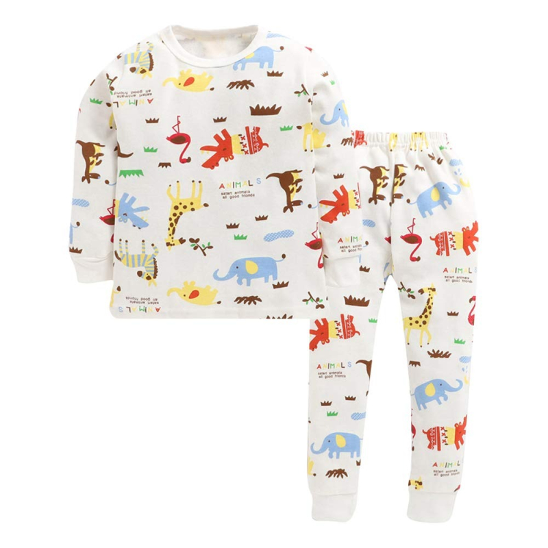 Hopscotch Boys Cotton Animal Print Top and Pajama Set in White Colour