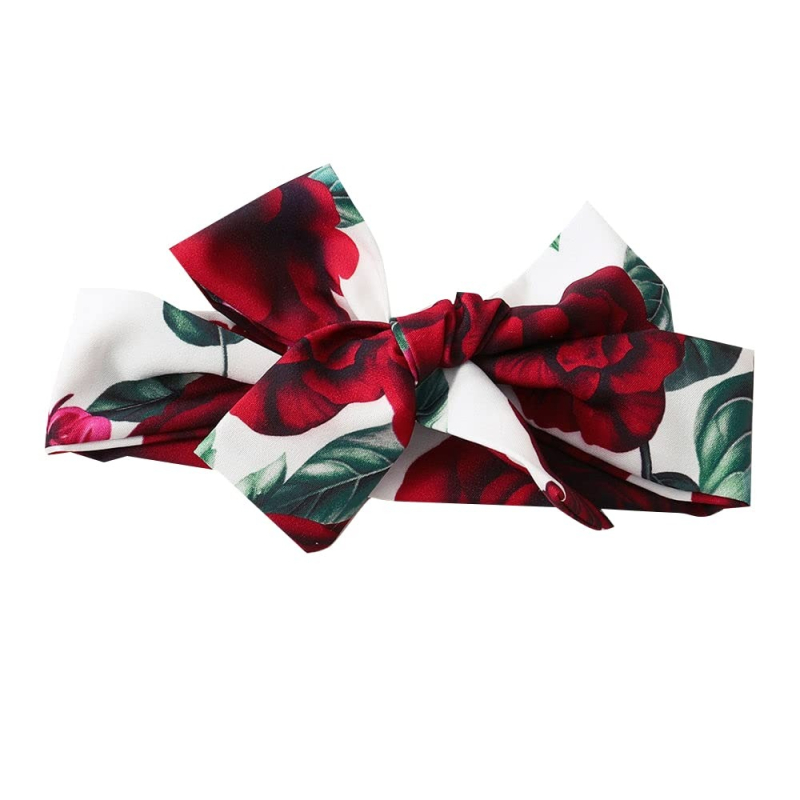 Hopscotch Girls Top and Floral Print Short Set with Headband Cotton and Polyester in Red Color