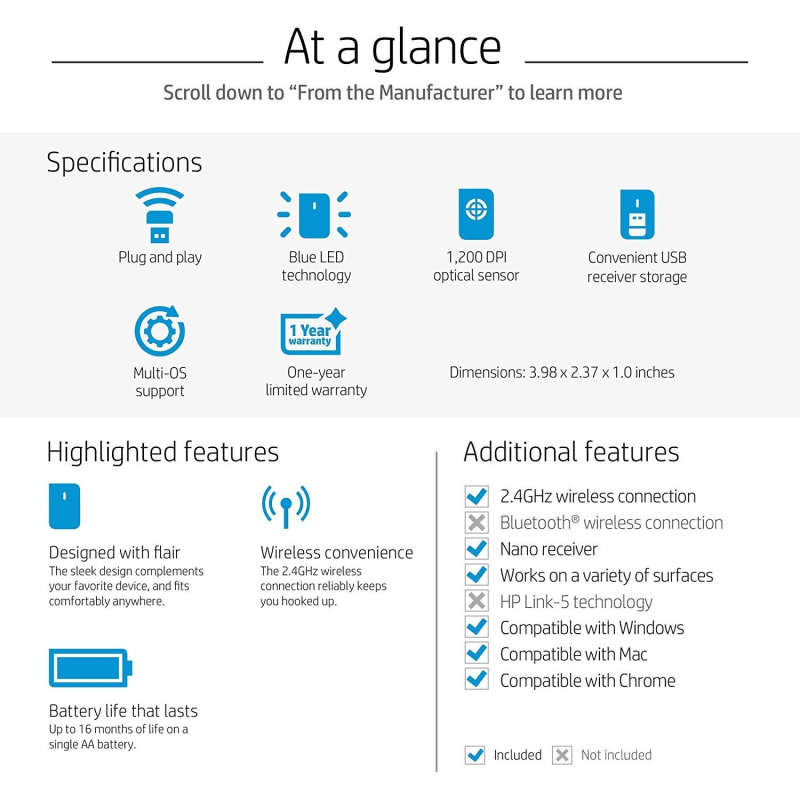 • With up to 16 months of life on a single AA battery, this mouse was designed to push the limits