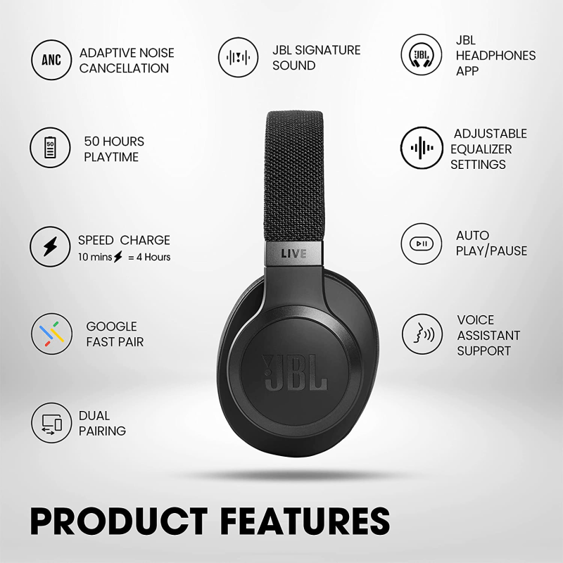 • JBL SIGNATURE SOUND: Live 660NC Headphones deliver JBL Signature Sound with Enhanced Bass, which can be found in the most famous venues all around the world.