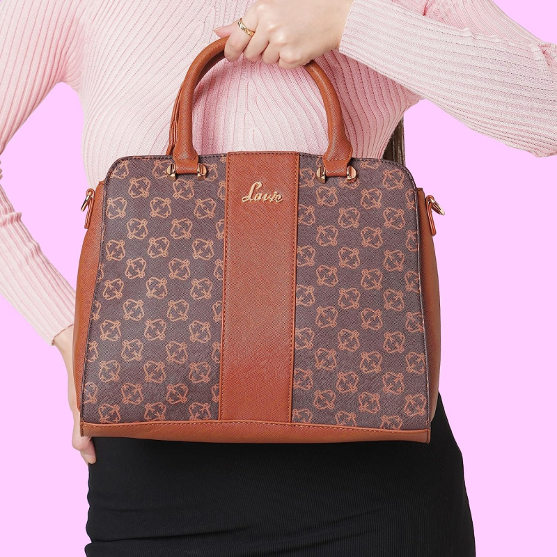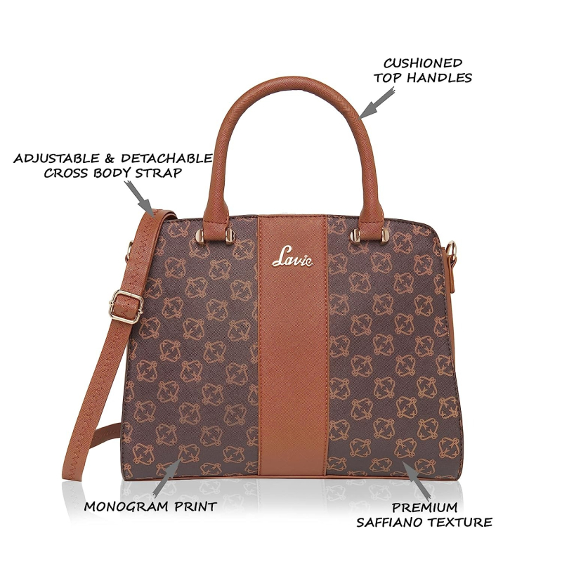 Complete your look with this beautiful Monogrammed satchel from Lavie. The design and compartments allow you to carry all your essentials in an organised fashion.