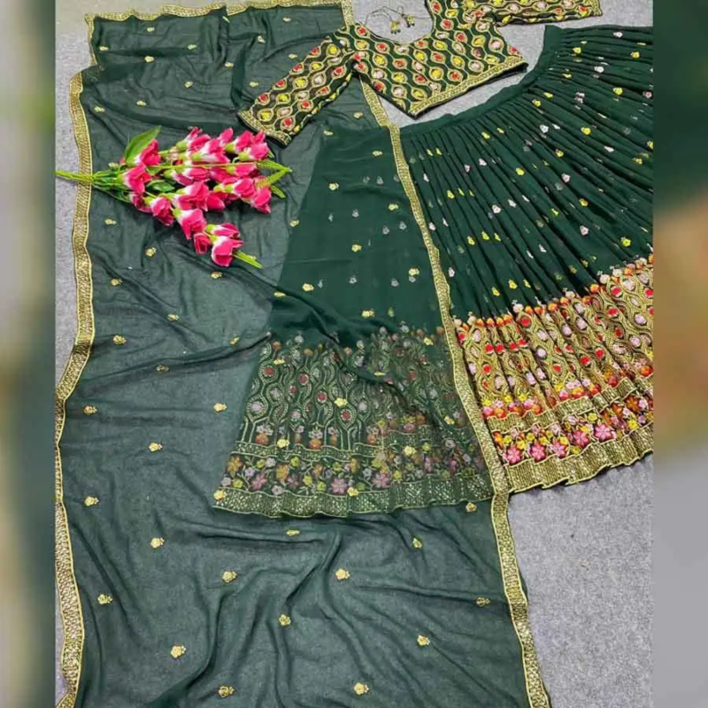 Lehenga Choli with Dupatta in Green Color