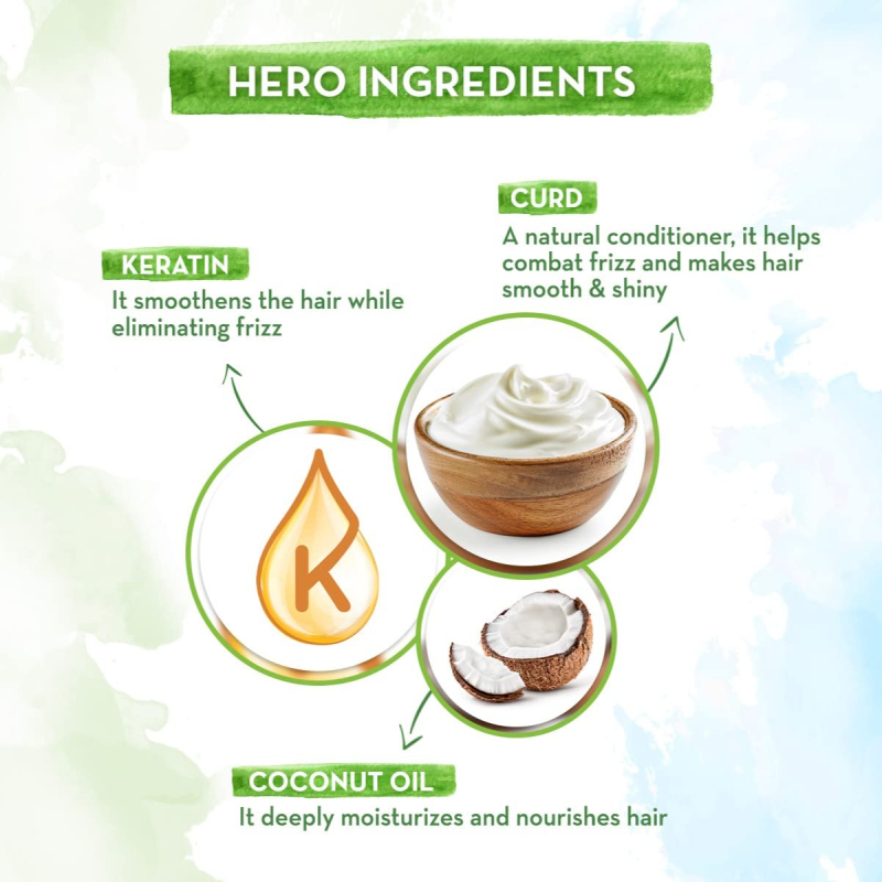 • CURD & KERATIN SMOOTHENS HAIR & TAMES FRIZZ: Enriched with Curd & Keratin, the Curd Smoothening Shampoo tames frizz, smoothens the hair & leaves it softer and shinier.