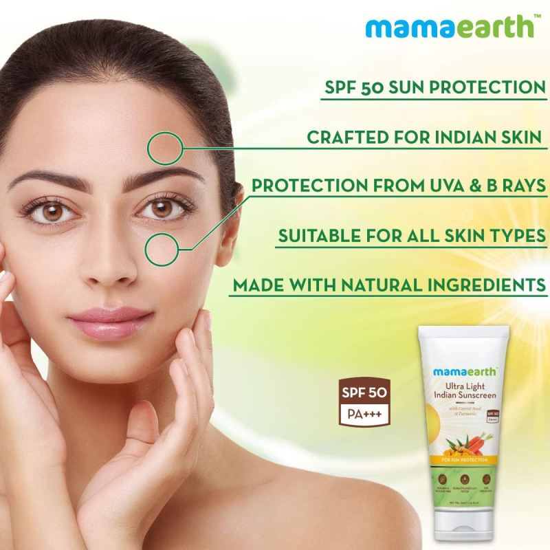 Mamaearth Ultra Light Indian Sunscreen Cream with Carrot Seed