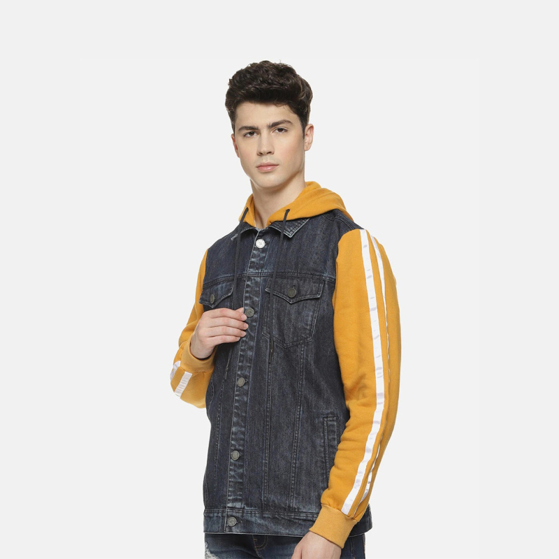 Men Charcoal Mustard Washed Colourblocked Windcheater Denim Jacket
