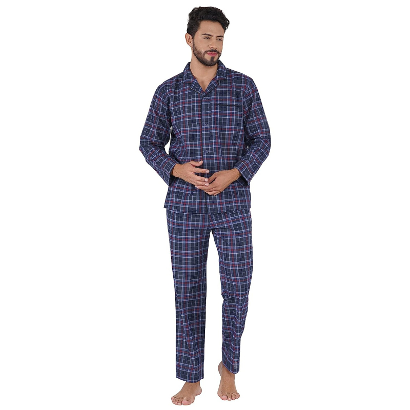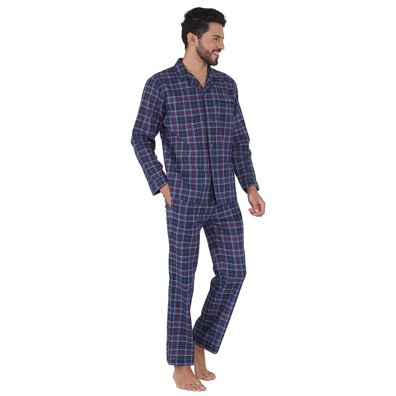 Men's Blue Checks Long Sleeve Shirt with Elastic Pyjama Set