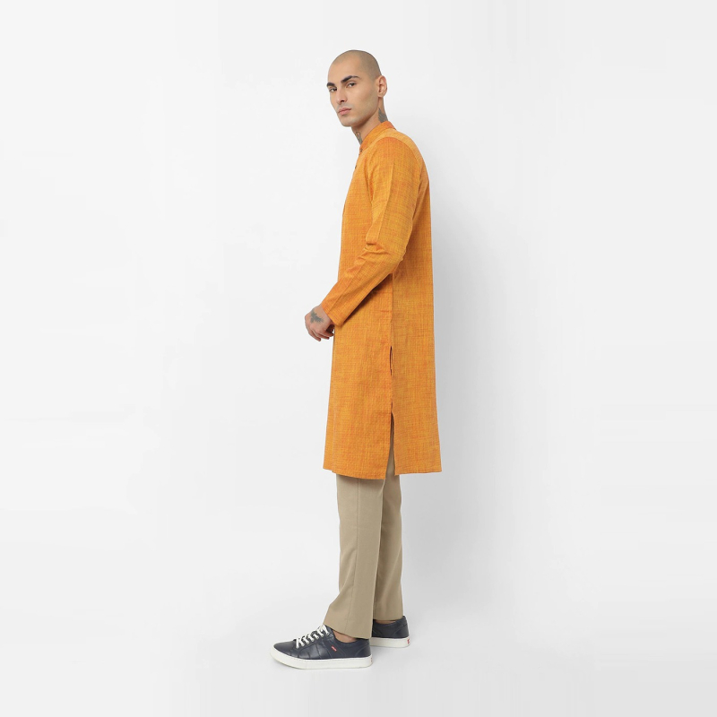 • Flaunt your style with a kurta from Netplay. You'll look dapper as ever in this yellow piece paired with slim jeans and sandals, ideal for any nice family gathering.