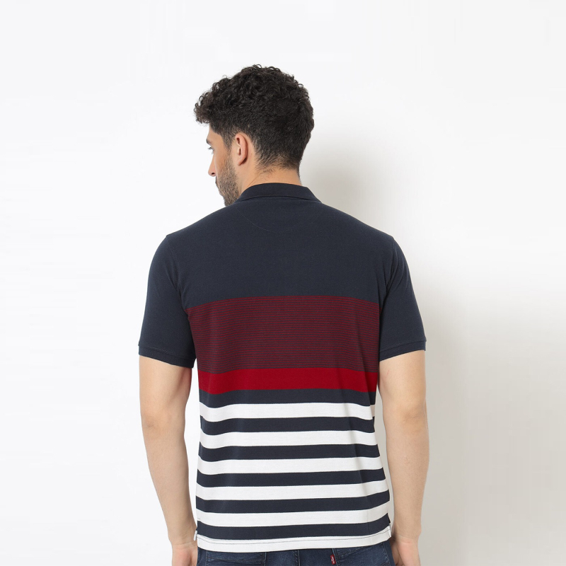 • Navy Blue and Red-White Stripped Tshirt for men