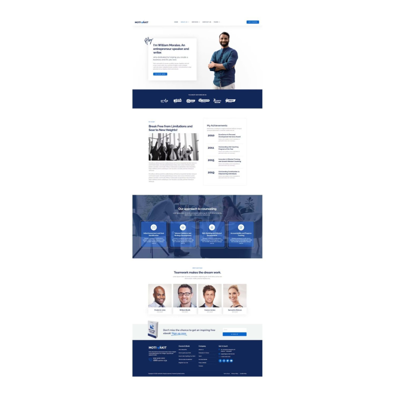 Motivakit is Elementor Template Kit for Life Coach & Motivator website. This template kit will help you to create any website related to business coaching website such speakers website, mentors, motivator, trainers, consultant, online course, therapists, and business training. It has 12+ pre-built templates with clean design and modern style.
