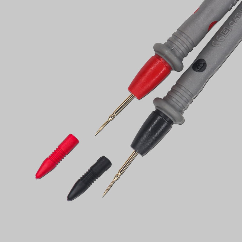 • Ultra-sharp Probe Tips Gold-plated probe tips are sharp and hard. Easy to get at small contact points on high-density boards. Provide more accuracy and long service life.
