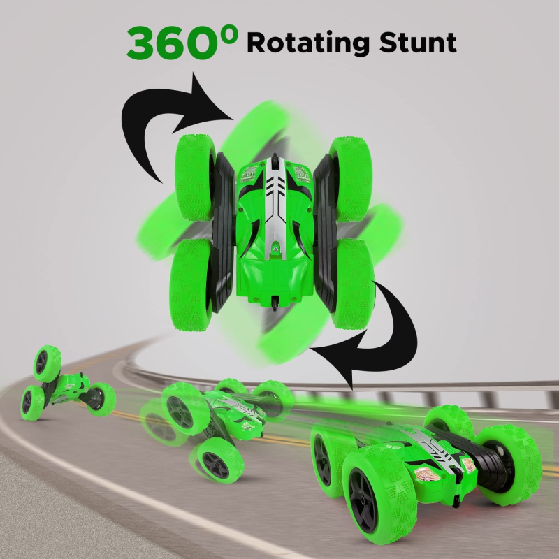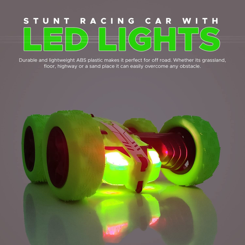 • 360° ROTATING STUNT: Double sides running, moving forward, backward, turning left, right, 360 degree tumbling flip for different playing experience on this electric remote control stunt car. You can control the rc cars for kids in any direction with its remote controller.