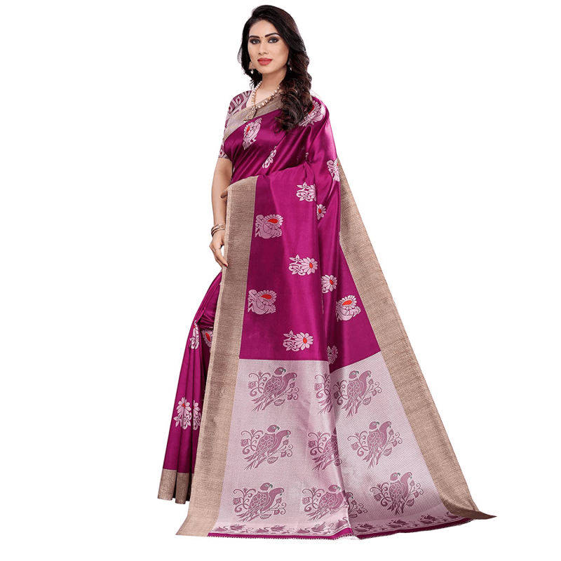 Nplash Fashion Women's Silk Embroidery Border Saree with Heavy Work Blouse Unstitched Piece