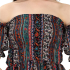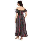 Offshoulder dress with puffed sleeves, smocked bodice and ruffles wrap skirt