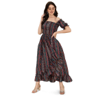 OOMPH! Women's Crepe A-Line Maxi Dress (Smocked}
