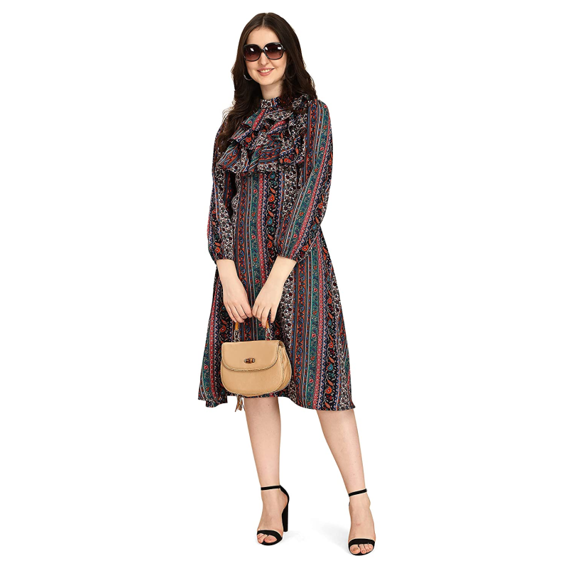 OOMPH! Women's Crepe Pleated Knee-Long Dress (Elizabeth}