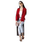POPWINGS Women Red Regular Fit Blazer