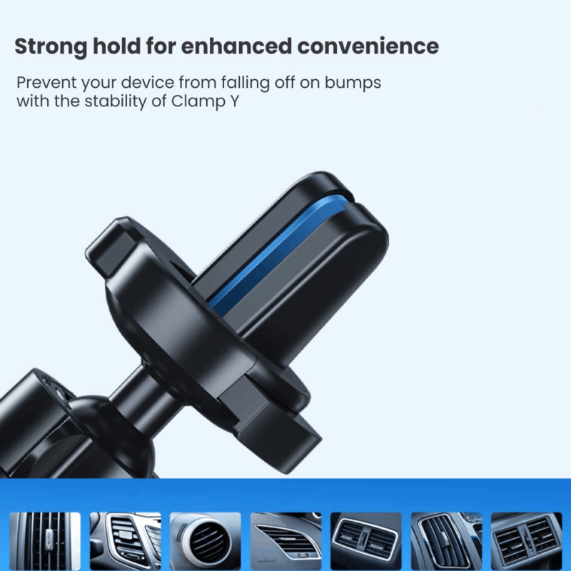 [DRIVE SAFE, DRIVE EASY] - Enjoy your driving with safety with the Clamp Y mobile holder. Just fix your device in the holder and operate it at almost the same eye level. In other words, never get your eyes off the road while you drive.