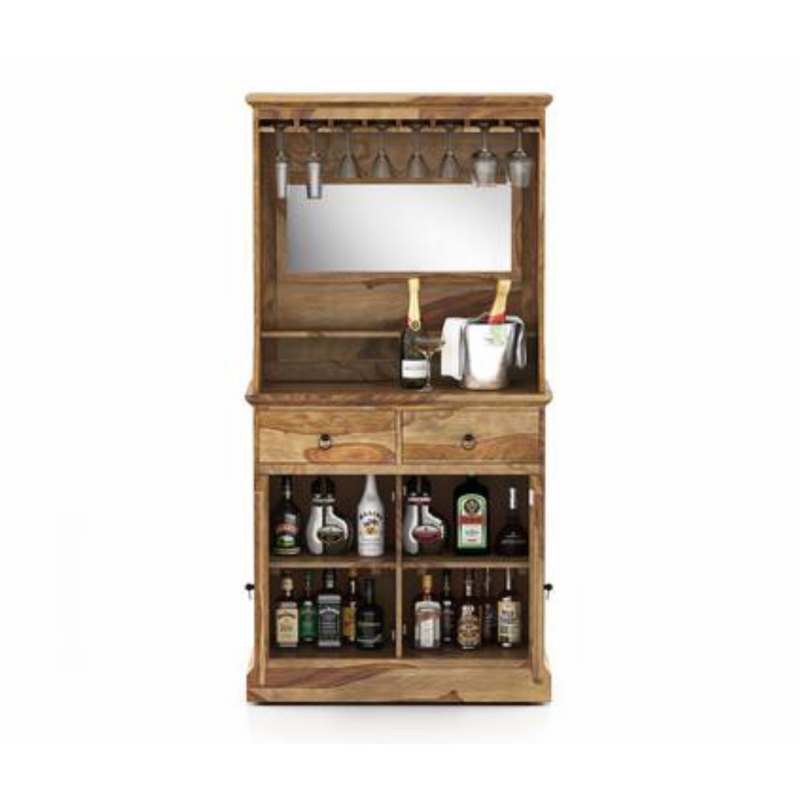 Sophisticated home bar perfect for the next big party. Riviera solid wood sheesham bar cabinet is an excellent furniture to house glasses, liquor and wine bottles. The sturdy sheesham wood design will amp up the elegance of your home.