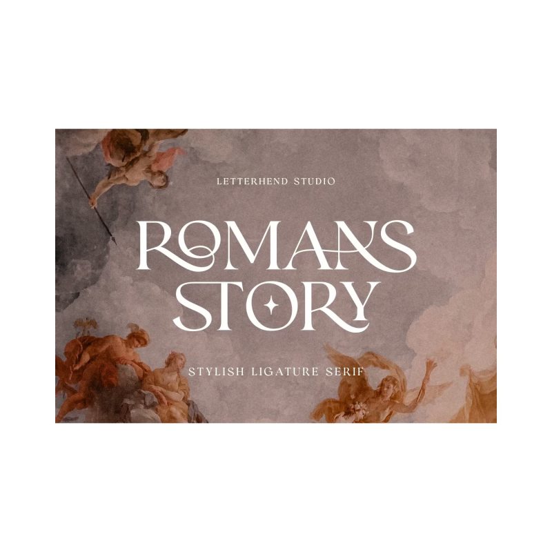 Romans Story is a sophisticated ligature serif from us. This typeface has been made carefully to make sure its premium quality and luxury feel. The ligatures makes this typeface unique and stands out rather than the regular serif font. Very suitable for logo, headline, tittle, and the other various formal forms such as invitations, labels, logos, magazines, books, greeting / wedding cards, packaging, fashion, make up, stationery, novels, labels or any type of advertising purpose.