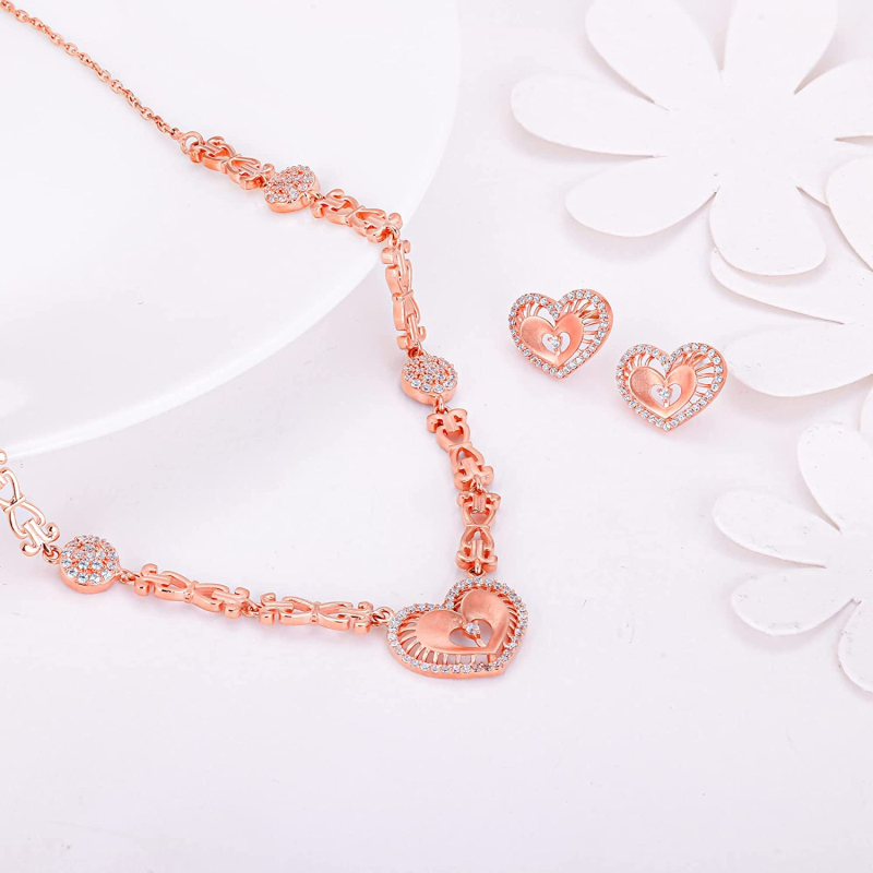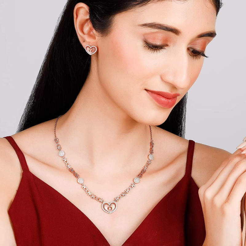 • PRODUCT DETAILS : Made of 925 Silver with Rose Gold Plating, Contains a necklace and a pair of earrings, Earrings dimensions: 1.22 cm x 1.63 cm, The length of the necklace is 45 cm with a 2.5 cm adjustable portion. Necklace Charm Dimensions: 1.73 cm x 1.94 cm