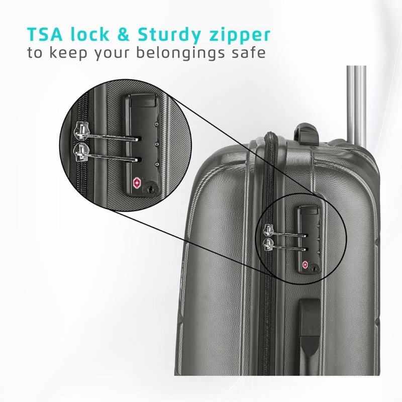 • TSA Lock: Our 4 Wheel Gunmetal Grey Trolley bag comes with a TSA Lock. We provide you a smooth adjustable handle for easy movement of the Trolley. Our medium size check in suitcase is a perfect product for all your travel plans.