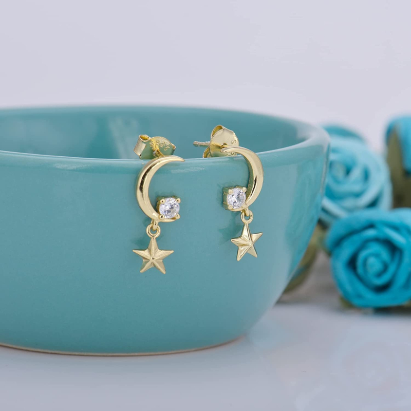 Sterling Silver 18K Gold Plated Moon-Star earrings