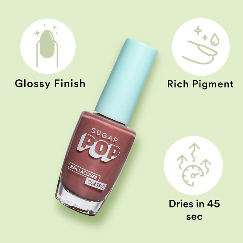 • SUGAR POP NAIL LACQUER has a quick drying formula that dries in 45 seconds giving you a perfectly glossy finish