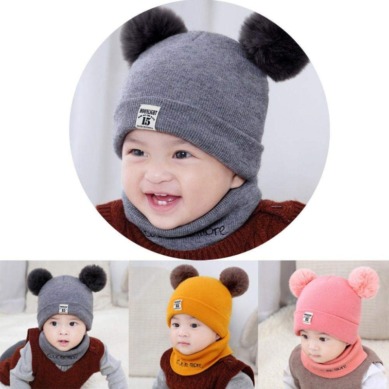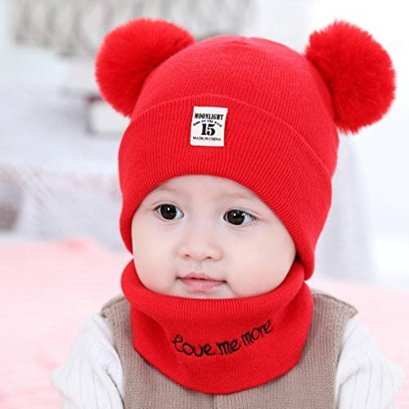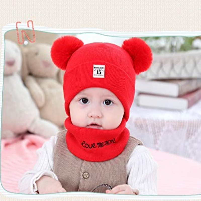 • Lovely Infant Skull Cap and Neck Gaiter --- Two fluffy pom poms , more fun and cute, bright solid color, good matching to any winter clothes; This baby girl's boy's cute skull cap is a protective accessory and makes him or her more adorable