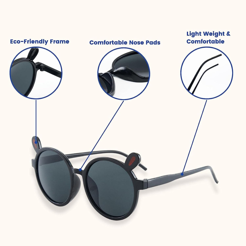 • These kids sunglasses are flat and durable, made of quality AC material which is skin-friendly and not easy to break, allowing your kids to wear for a long time