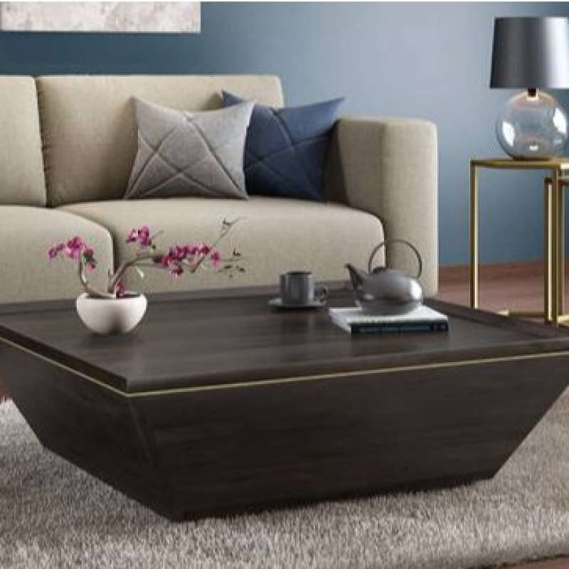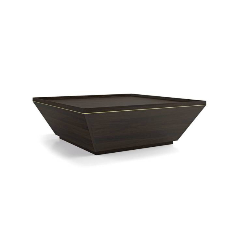 • Art inspires art. The Taarkashi range is our ode to the Indian handicraft of taarkashi - fine metal wires worked into wood. This coffee table is a vision in rich wood and warm brass. The unusual trapezoidal form plays hero, while a delicate line of brass gently frames the table.The elegant table top, with chamfered edges, acts as a serving station for beverages. Perfect for the contemporary sophisticate.