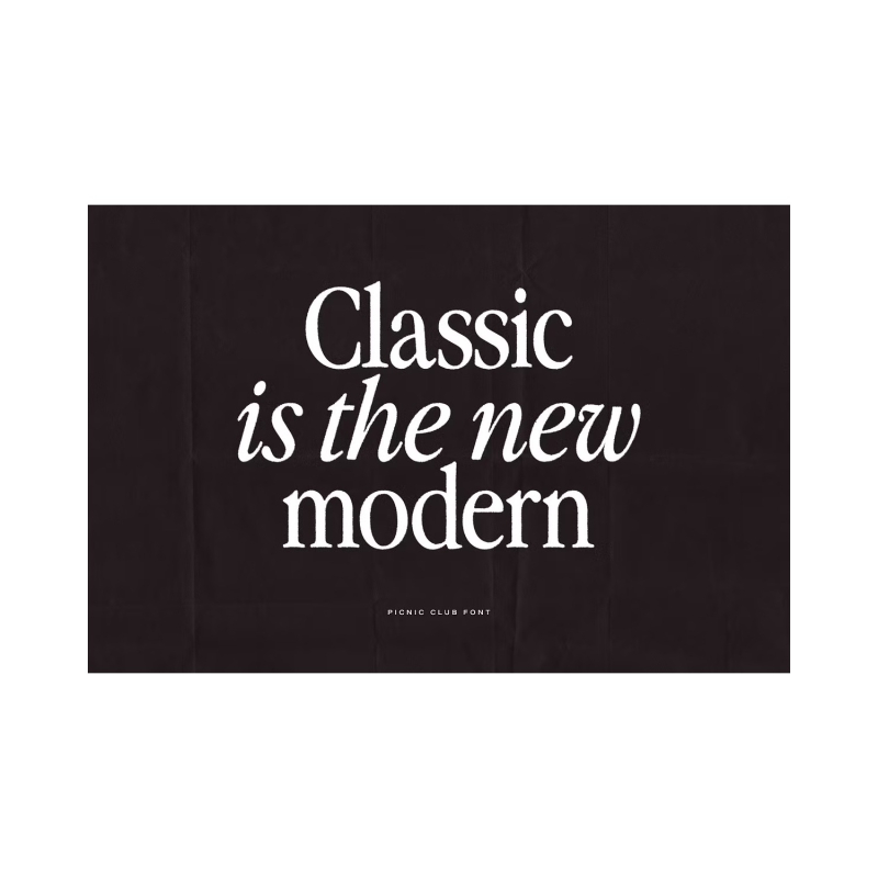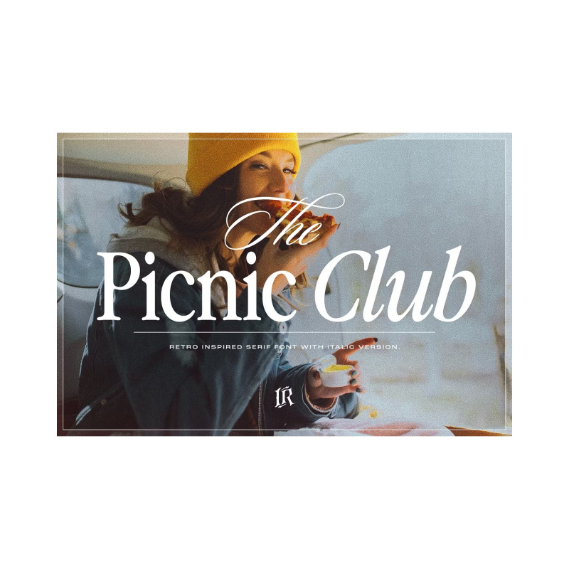 The Picnic Club - Nostalgic Serif is a stylish vintage font inspired by 80’s groovy vibe with a touch of modernity. It looks amazing at display sizes and is easily readable in text size. There are two versions of this font : REGULAR and ITALIC. Picnic Club is a display font made mainly for headlines, titles, and other short texts and is well-suited for advertising, vintage mood board, branding, logotypes, packaging, titles, editorial design and modern and vintage design.