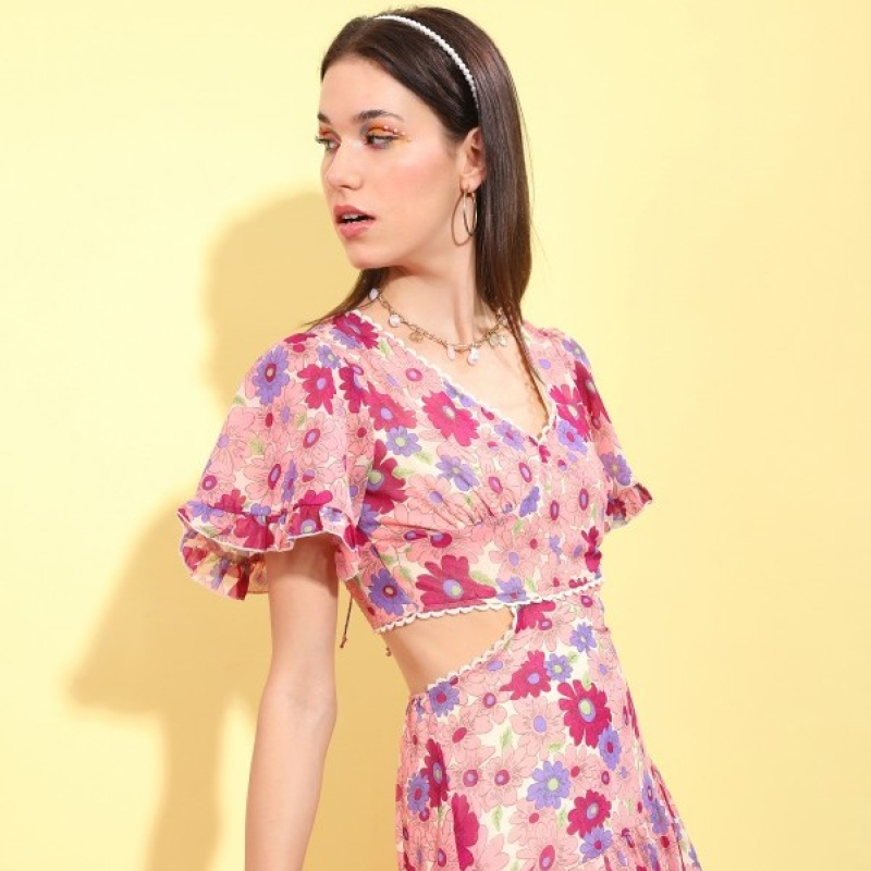 Tokyo Talkies Women Peach Printed Fit And Flare Tiered Dress
