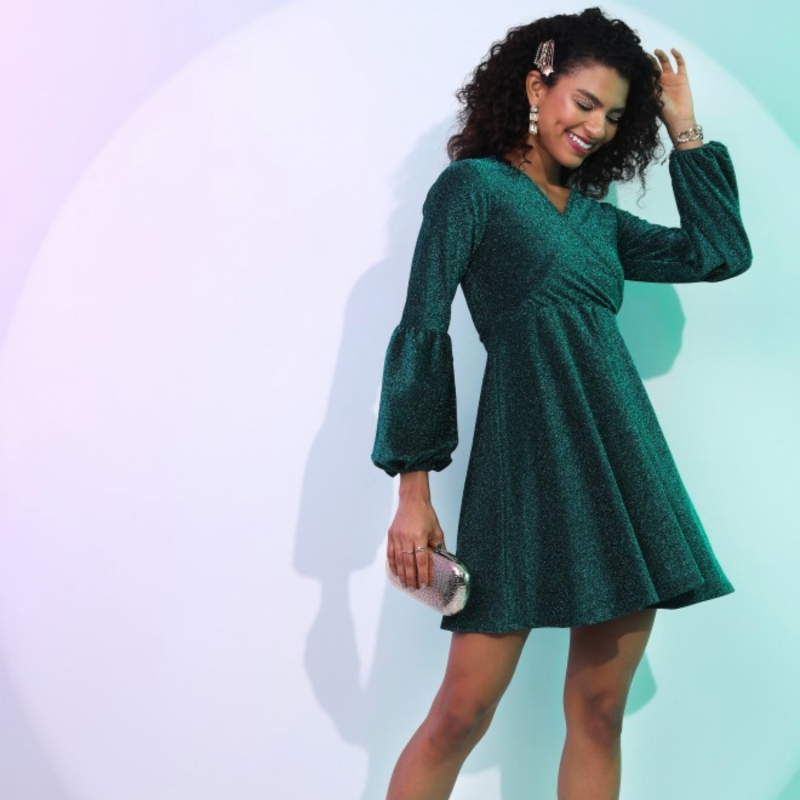 Tokyo Talkies Women Teal/Black Printed A-Line Dress