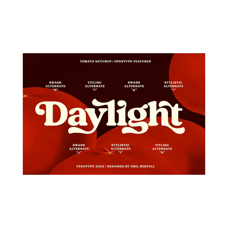 Tomato Ketchup is a great typeface for contemporary graphic design with that certain feeling of familiarity. It works well on logos, packaging, restaurant graphics, or any display use, as well as in headlines or shorter texts. Try Tomato ketchup with reduced tracking for tighter word images, or if you want to use it in really small sizes add some tracking.