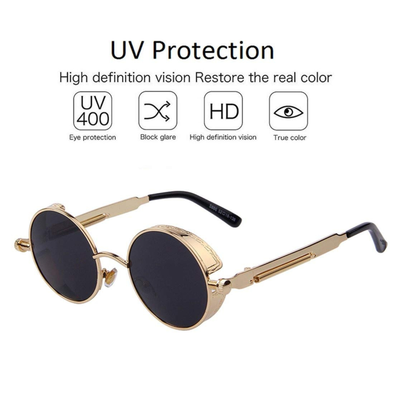 elegante' Branded Tony Stark Steampunk Golden Metal Round Sunglasses is suitable for both men and women with all types of faces
