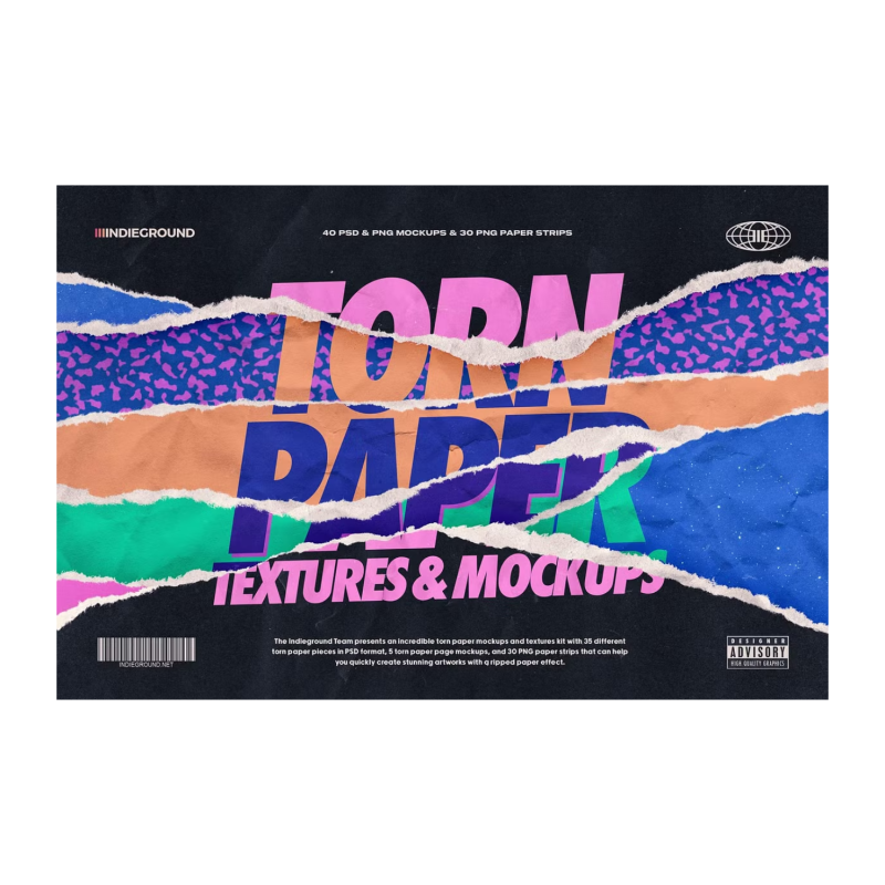 Torn Paper Mockups & Textures Kit is the perfect kit to achieve that contemporary ripped paper aesthetic you’ve been dreaming of. An indispensable pack of high-quality PSD mockups and PNG textures for getting the torn paper edges you want in no time!