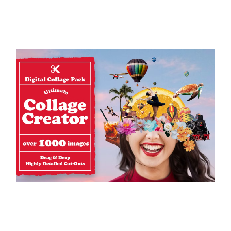 This Collage Creator includes every pack in the Modern Collage Supply Co collection. With over 1000 cut-out images, the collage possibilities are limitless.