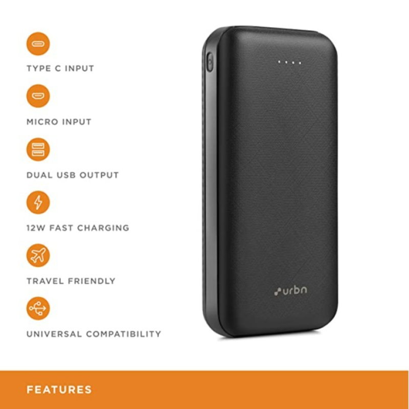 This powerful Power bank from the house of URBN helps you to rule out of the worry of your phone running out of charge. With 20000mAH power, it can charge your phone fast and safely. With matte finish body and light weight, this power bank becomes a stylish accessory and is comfortable to carry around with you everywhere