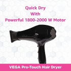 VEGA Pro Touch 1800-2000 Watts Professional Hair Dryer with 2 Detachable Nozzles