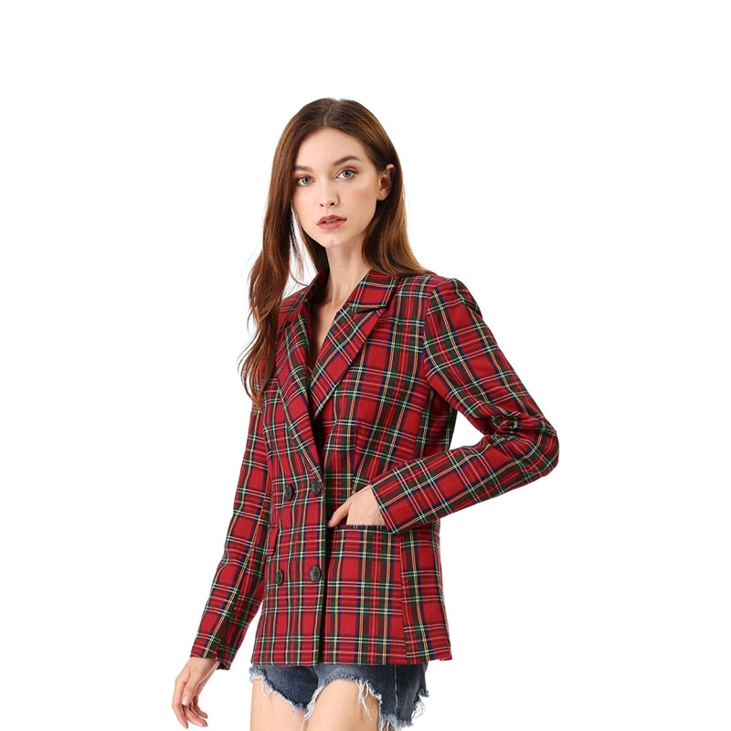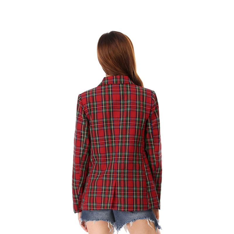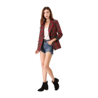 Women Red & Black Checked Pure Cotton Single-Breasted Casual Blazer