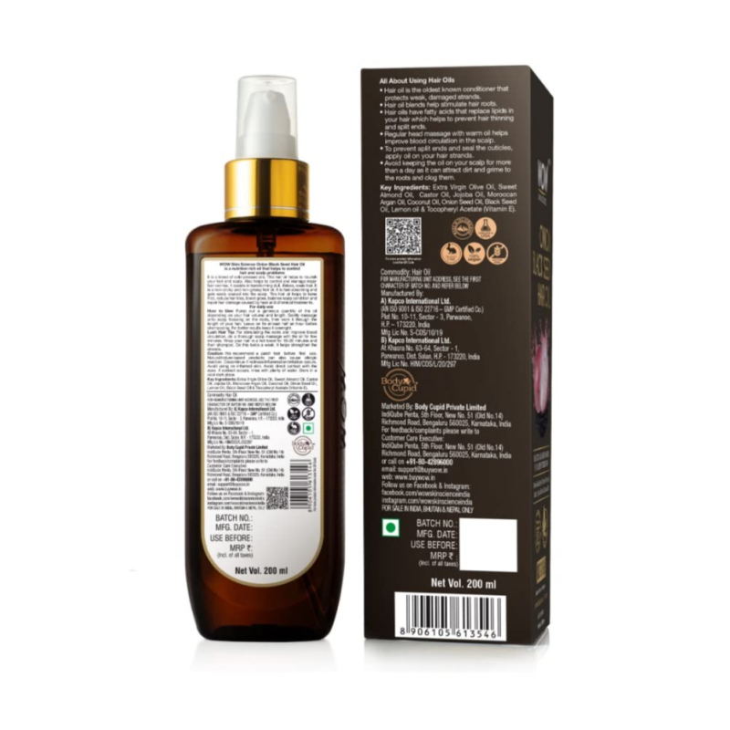 • Onion hair oil by WOW Skin Science is powered with Onion Black Seed Oil extract blended with Almond, Castor, Jojoba, Olive & Coconut Oils which promotes hair growth and controls hair fall.